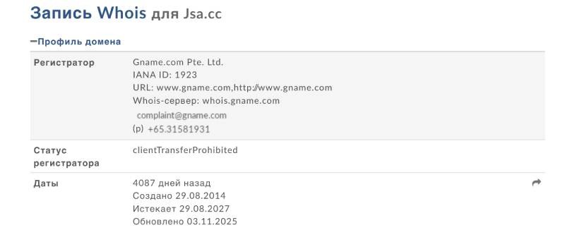 Все эти площадки существуют короткий срок — от нескольких недель до пары месяцев, что подтверждает их временный и сомнительный характер. Легальные инвестиционные компании не создают десятки зеркальных сайтов и не меняют названия каждые несколько недель. Что касается конкретно сайта «Джса», то сам домен работает очень давно, но именно обман функционировать на нем начал 3 ноября 2025 года.